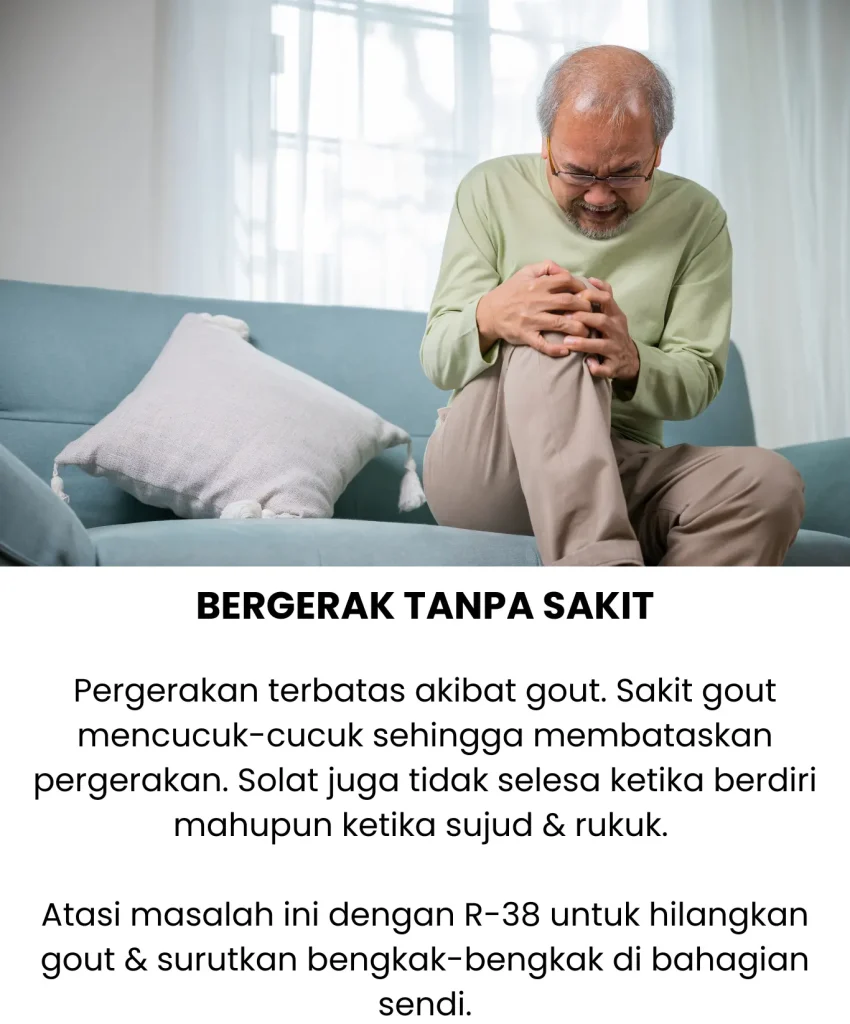 Jangan Risau, dengan kapsul R38, In Shaa Allah masalah sendi & gout anda beransur pulih…