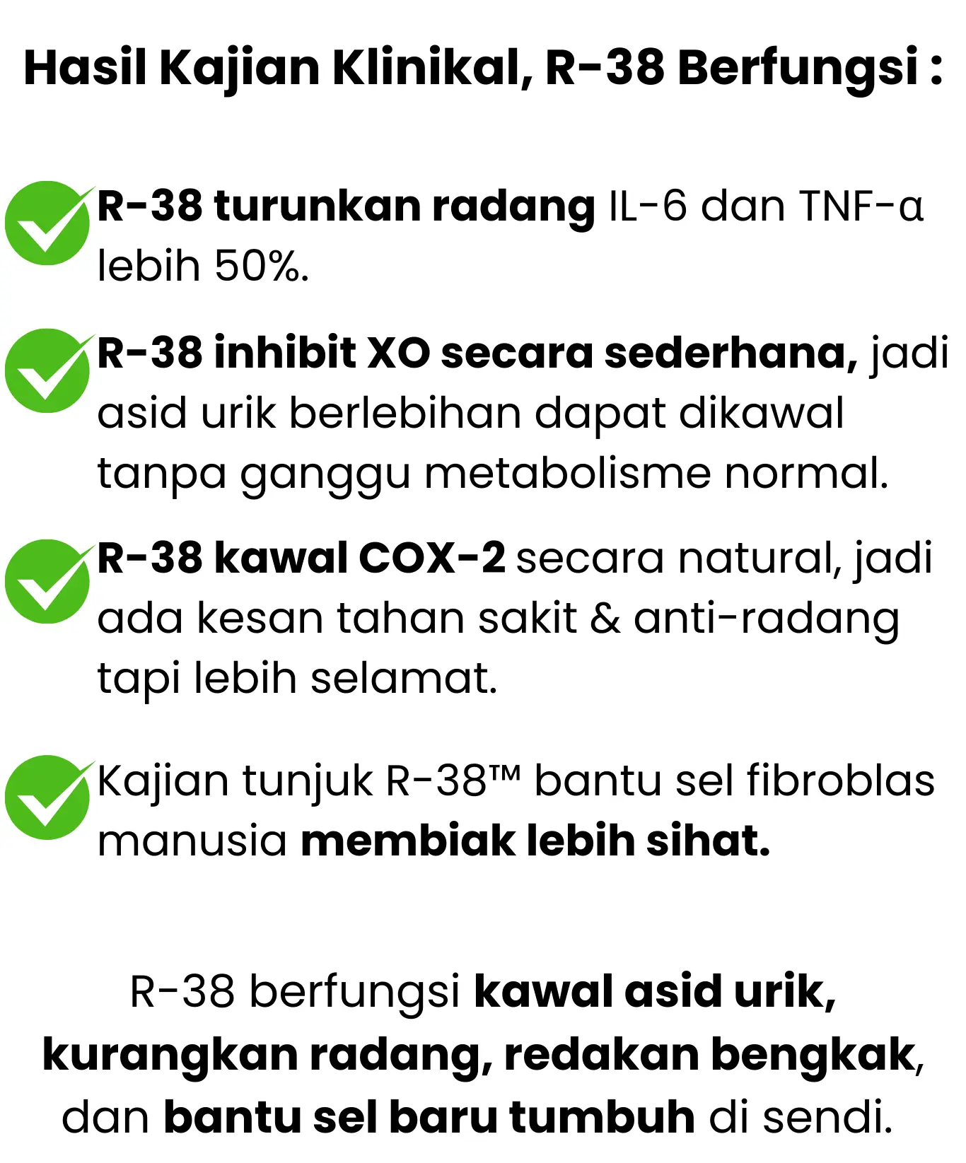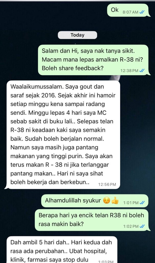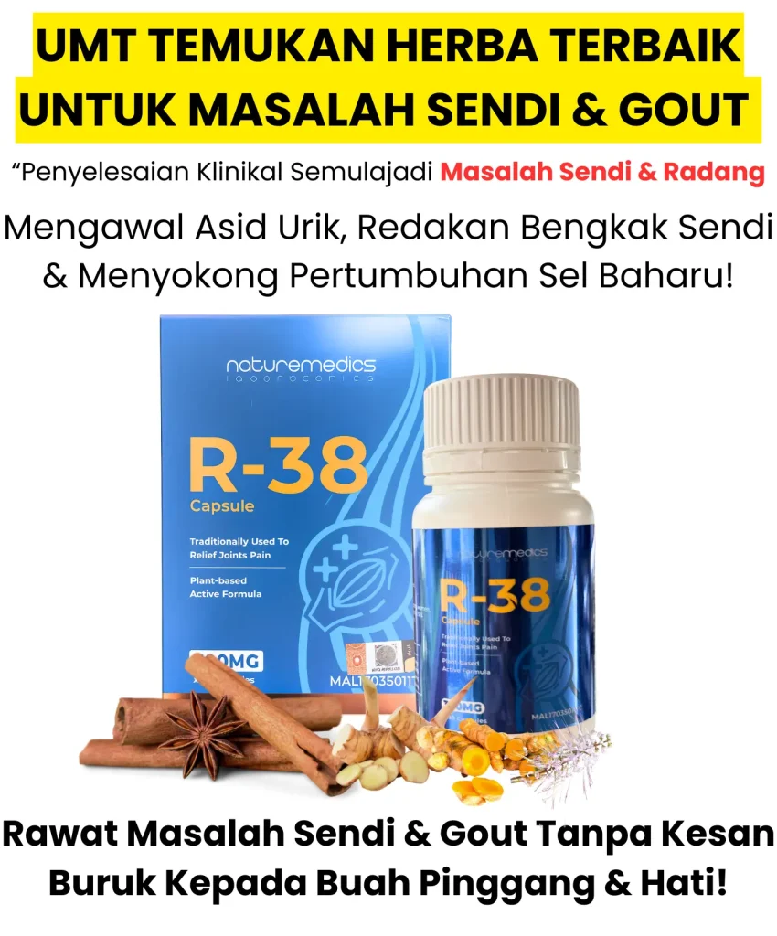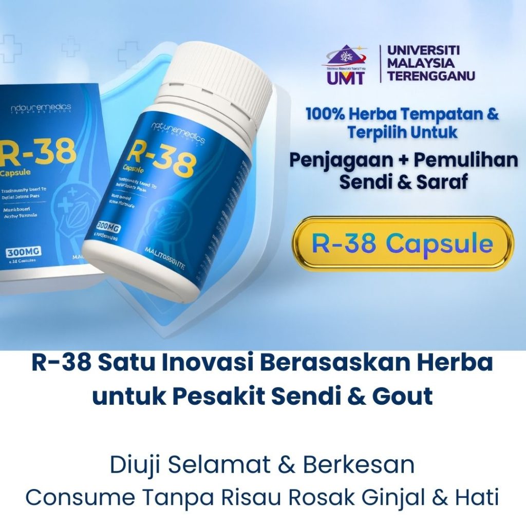 Jangan Risau, dengan kapsul R38, In Shaa Allah masalah sendi & gout anda beransur pulih…